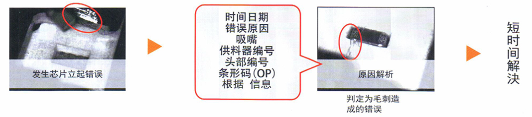 過在貼片頭部內安裝超小型攝相機,可以實時取得吸取/貼片的圖像,實現了吸取與貼片時的檢查,還能保存追溯信息。