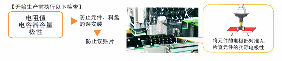 在開始生產前測定貼片元件的「電阻值JJ電容器容量JJ極性」可以事先防止元件誤貼片。新型的CVS裝置,可以同時